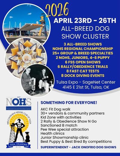 We will be hosting a concurrent specialty in conjunction with the Mid-Continent Kennel Club in Tulsa, Oklahoma. The specialty will include the 4–6 Month Puppy class, all regular classes, and Veteran classes. We are pleased to announce that our judge will be Michele Gawenka, and a variety of attractive prizes will be awarded to the winners.